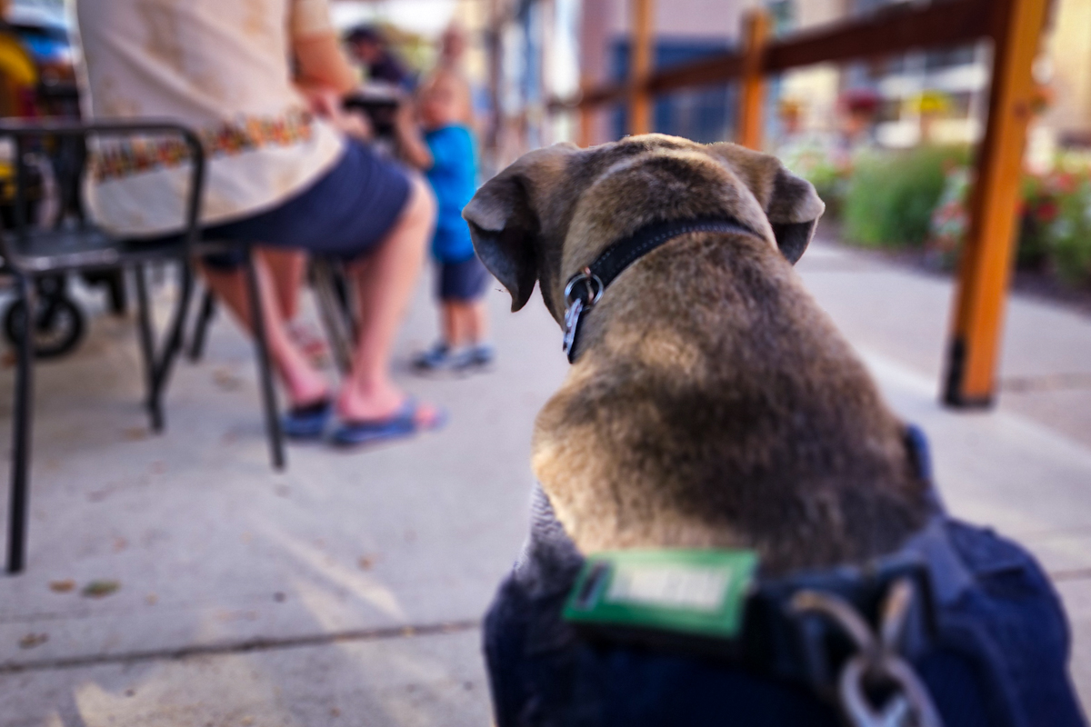 I spent yesterday afternoon reading and relaxing with Cassie. As we had near-record warmth (31°C at O'Hare, 28°C at Inner Drive Technology WHQ), we spent the day mostly outside. The highlight for Cassie may have been the woman who gave her a couple of fries before her partner and toddler arrived. Cassie's lowlight might have been unsuccessfully trying to psychically will the toddler to toss a couple of fries in her direction: